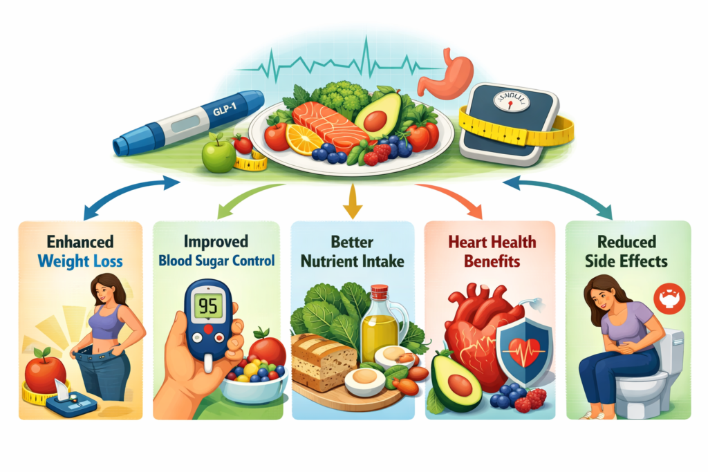 In reality, Diet with GLP plays a critical role in how effective, safe, and sustainable your weight loss journey will be. GLP-1 medications are powerful tools-but they work best when combined with the right nutrition strategy.